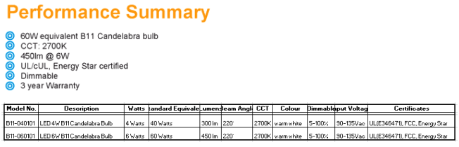 LED B11 6W Candelabra Bulbs